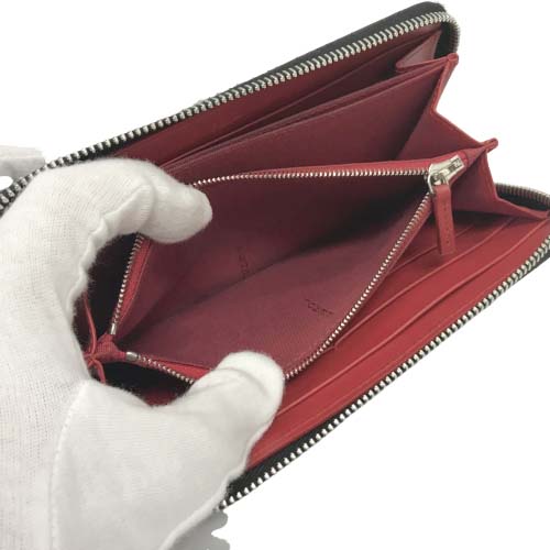 ラウンドファスナーの長財布で、三白眼に黒目のタイプですね。